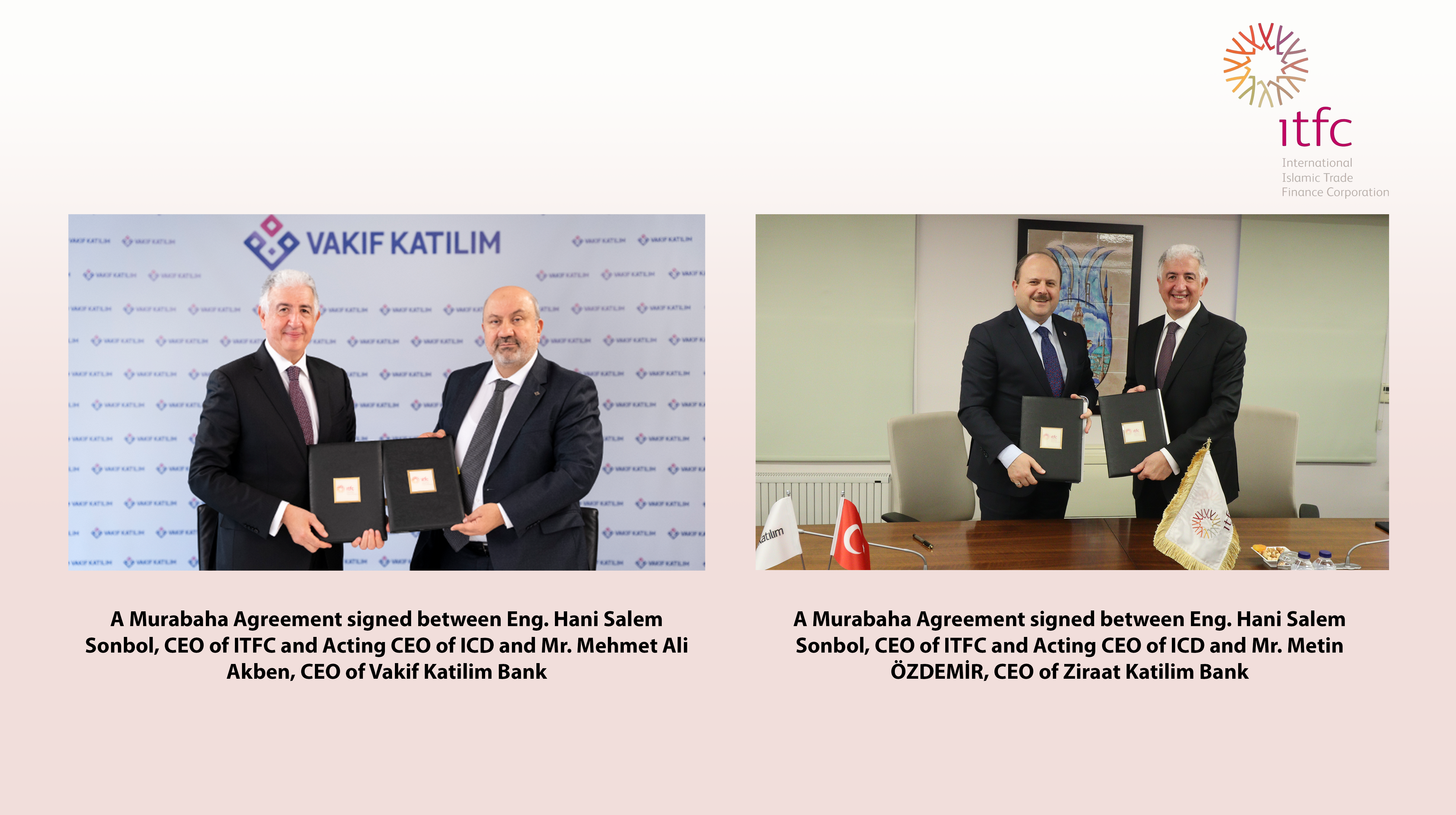 The International Islamic Trade Finance Corporation (ITFC) (http://www.ITFC-idb.org), member of the Islamic Development Bank (IsDB) Group, announce the signing of two significant Murabaha Financing Agreements with Vakif Katilim Bank and Ziraat Katilim Bank, valued at USD 20 million each. The agreements were formalized during the visit of Eng. Hani Salem Sonbol, CEO of ITFC, to Istanbul during the COMCEC Meetings on December 4, 2023.